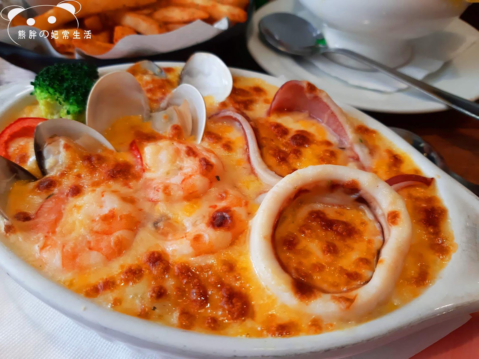 焗烤飯鮮少會看到小卷,蝦子和蛤蜊也放不少