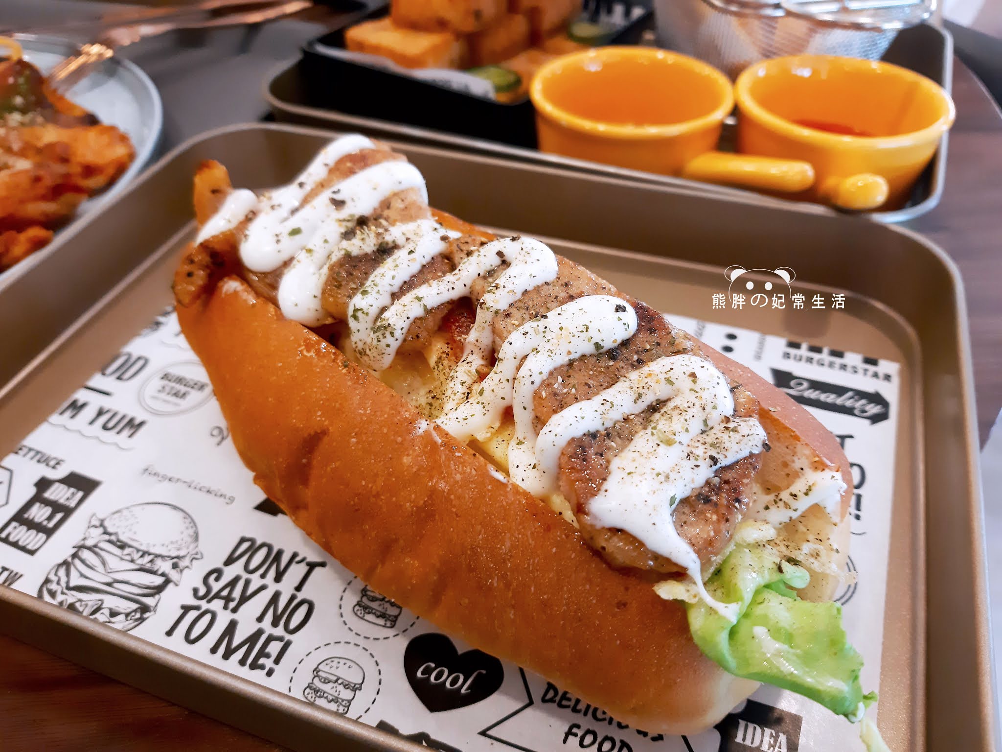從外觀看來比較像是大亨堡的感覺,實際上這一道比大亨堡更有份量更具營養,新鮮的生菜上還有歐姆蛋,歐姆蛋上面還有兩片肉片,並淋上乳酪起士醬,整體看起來豐富滿分。